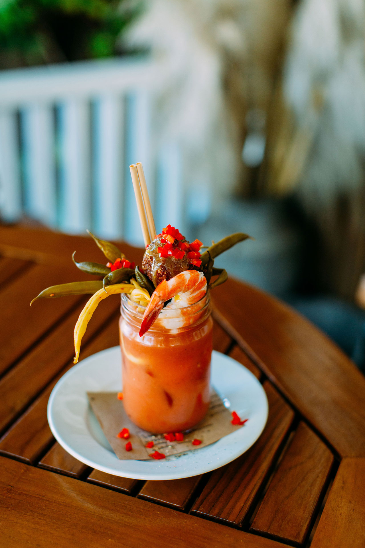 And then there’s the Bloody Mary—the café’s edible manifesto. “The Bloody Mary is iconic at the Ramos House Café,” Michelle smiles. “Back when the owner only had a beer/wine license it was soju based, served with homemade pickled green beans, a cocktail shrimp, and the Scotch Quail Egg.” Today, that same drink is poured with vodka, handmade in the kitchen, an event unto itself. “The elaborate garnishes are what make it so very popular,” she adds, “an admired photo moment every time we serve one.”